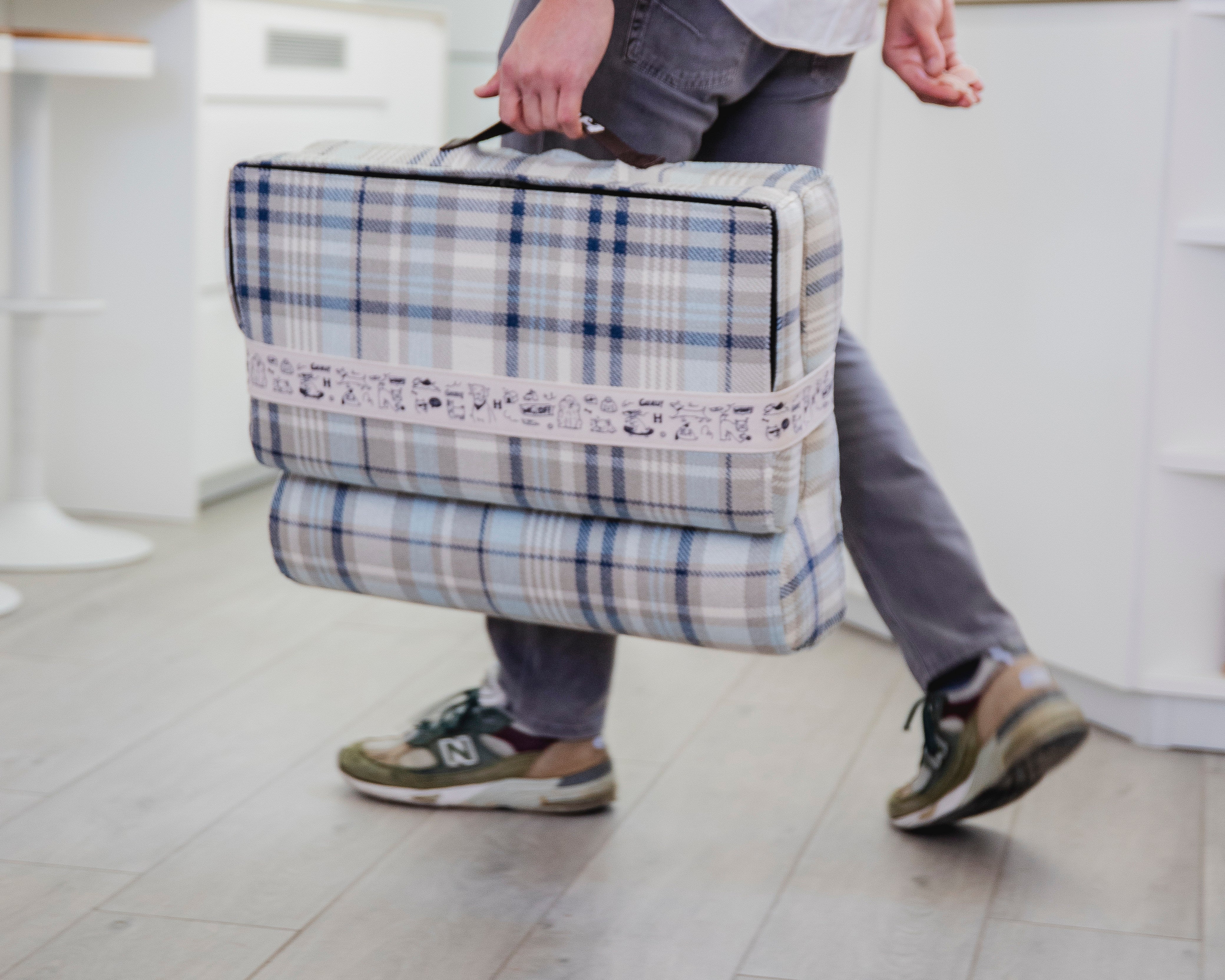 Nuestra cama está hecha a mano de principio a fin. Desde el corte de la gomaespuma y viscoelástica hasta la confección y cosido de las fundas.